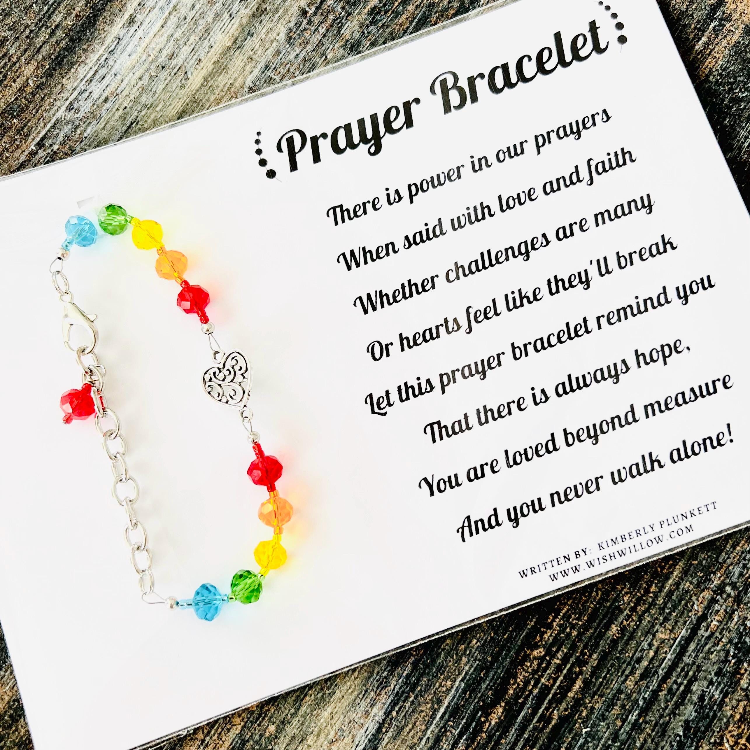 This prayer bracelet would make a perfect gift! It’s meant to offer encouragement & be a reminder of the power of prayer ❤️ It features glass beads, and is adjustable in length from 7” to 8.5”. It will arrive, tied to a 5” x 7” card with our original poem printed on it, and tucked inside a clear cello sleeve. A blank card is also included inside, to offer space to write a personal message.