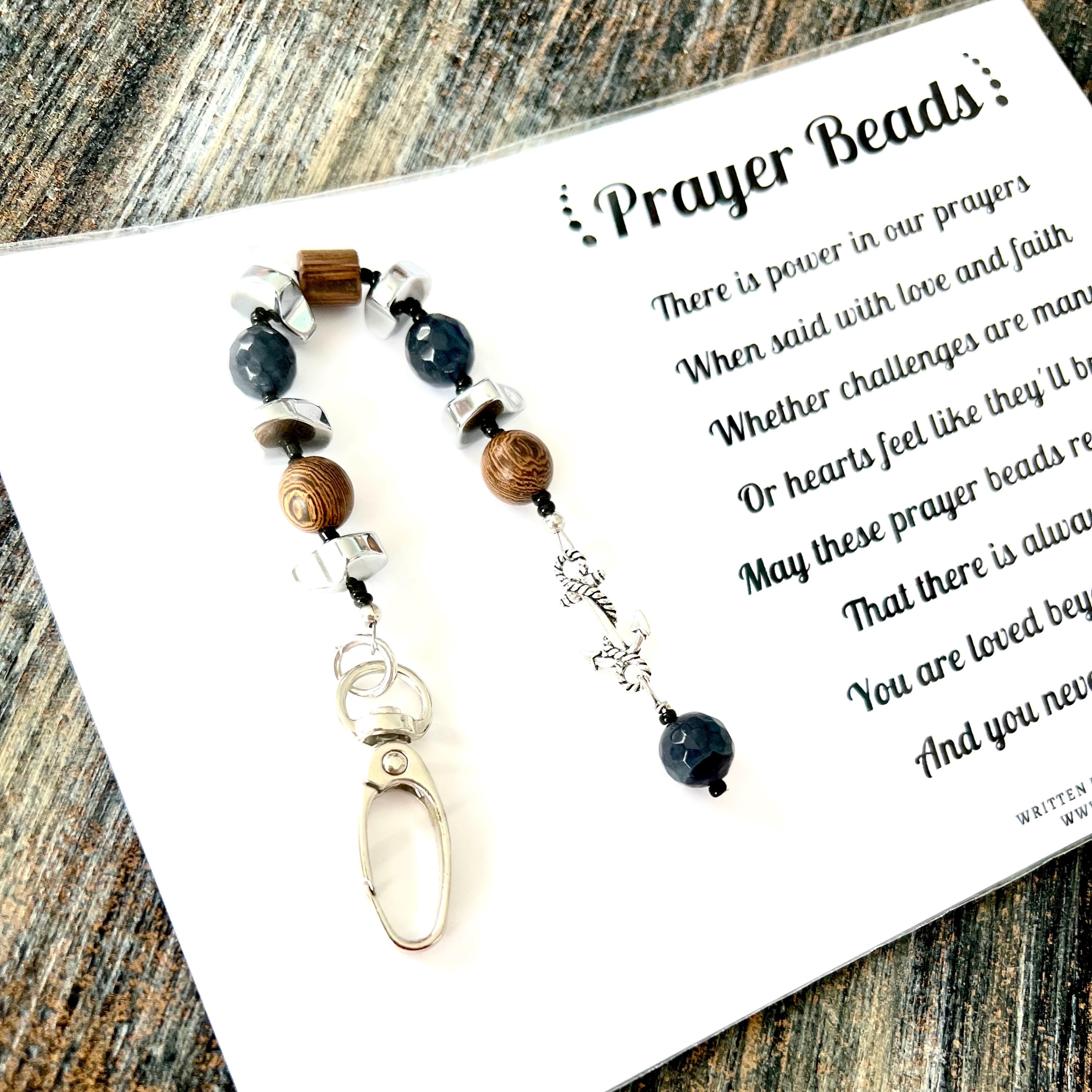 These prayer beads will make a perfect gift! They are meant to offer encouragement & be a reminder of the power of prayer ❤️ They feature glass beads, and an oval shaped clip (clip may be attached to a key ring, purse, spiral notebook, backpack, etc.). They will arrive, tied to a 5” x 7” card with our original poem printed on it, and tucked inside a clear cello sleeve. A blank card is also included inside, to offer space to write a personal message.
