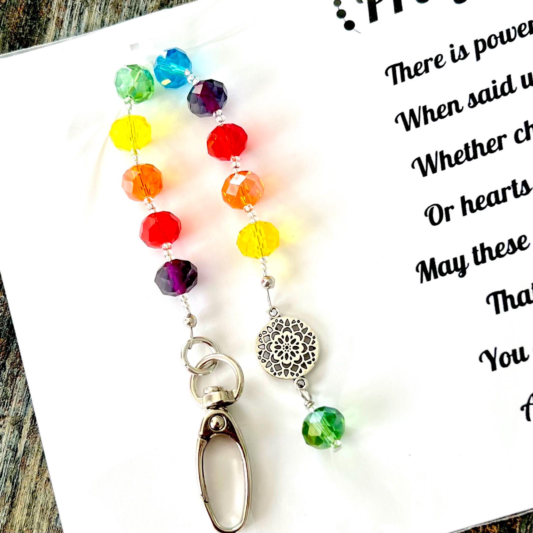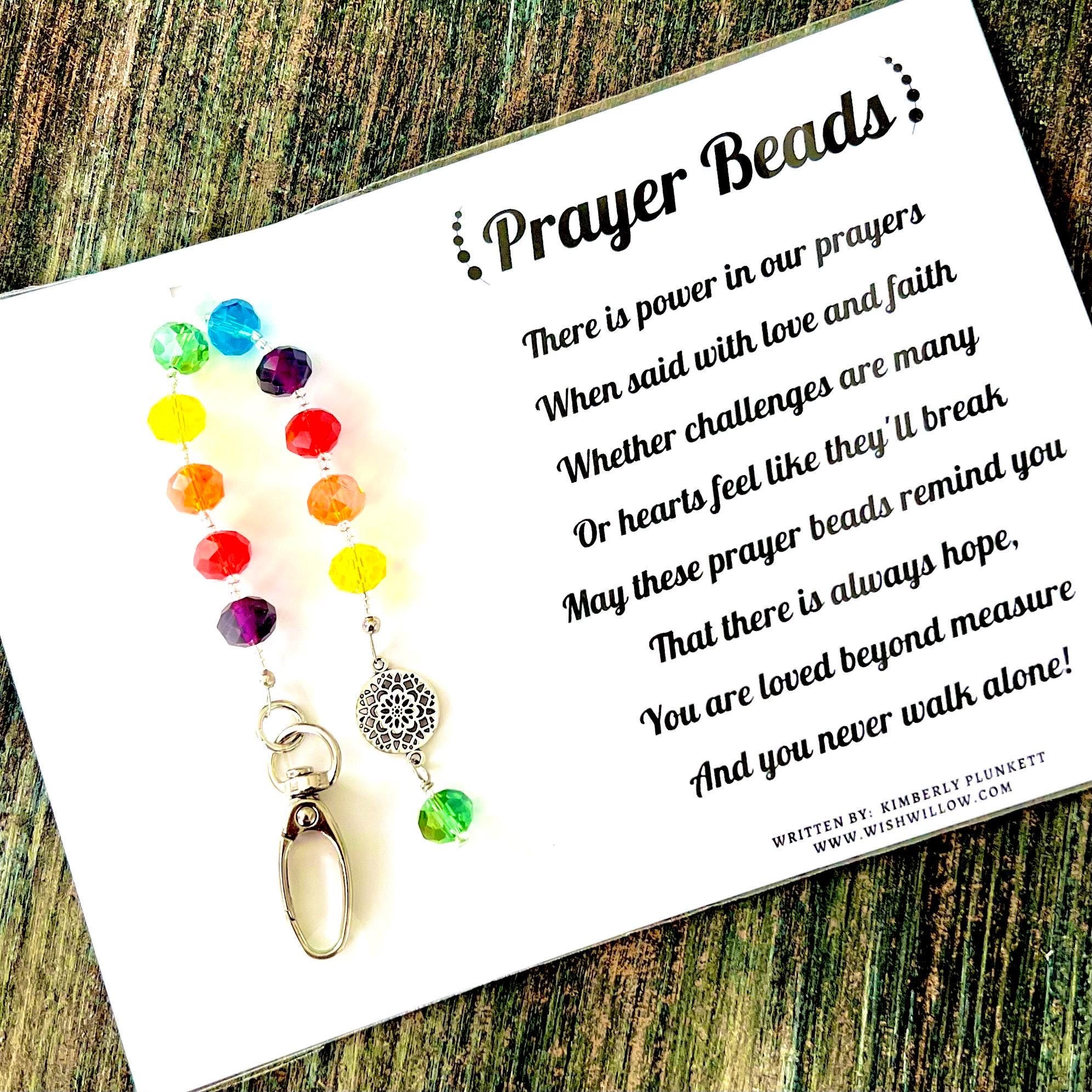 These prayer beads will make a perfect gift! They are meant to offer encouragement & be a reminder of the power of prayer ❤️ They feature glass beads, and an oval shaped clip (clip may be attached to a key ring, purse, spiral notebook, backpack, etc.). They will arrive, tied to a 5” x 7” card with our original poem printed on it, and tucked inside a clear cello sleeve. A blank card is also included inside, to offer space to write a personal message.