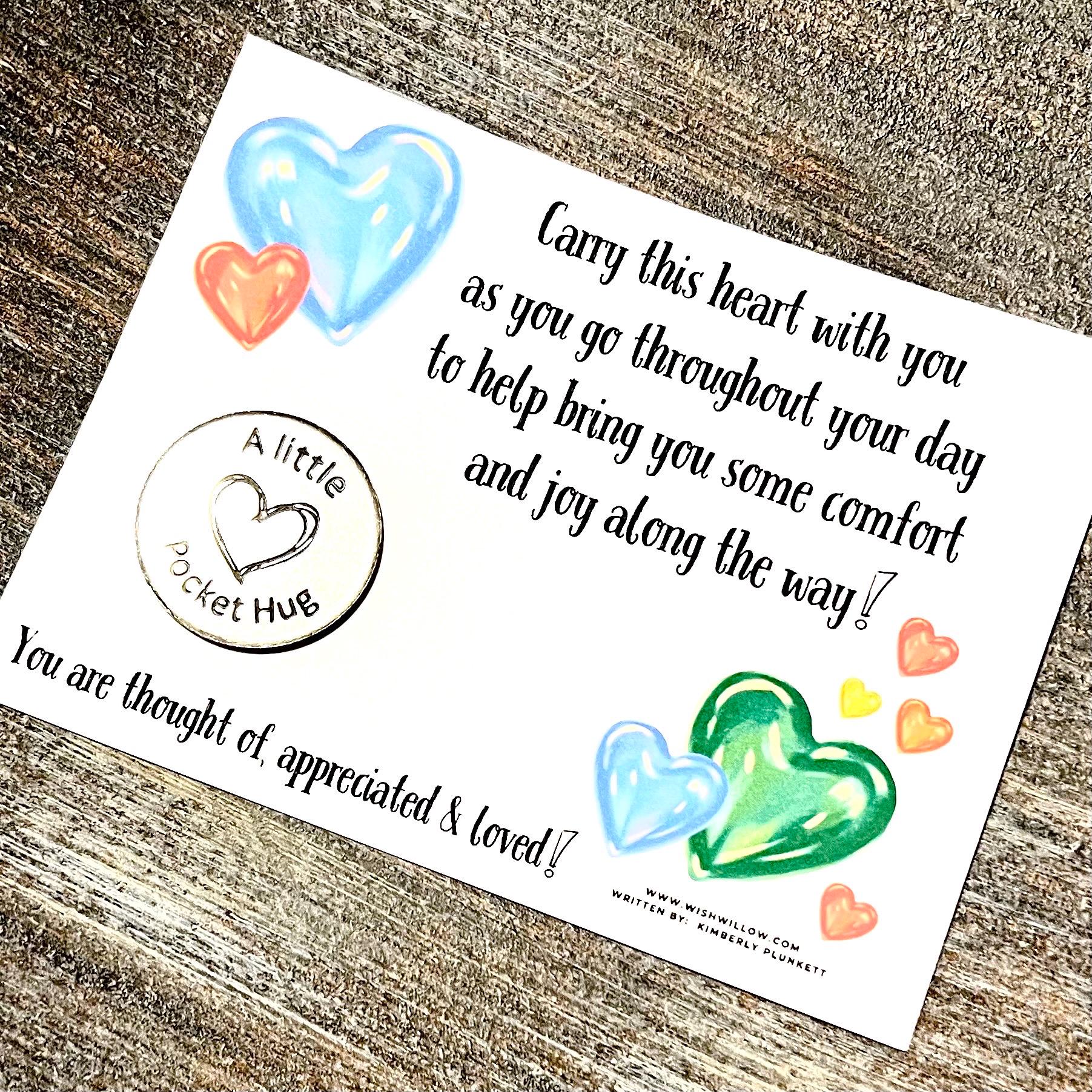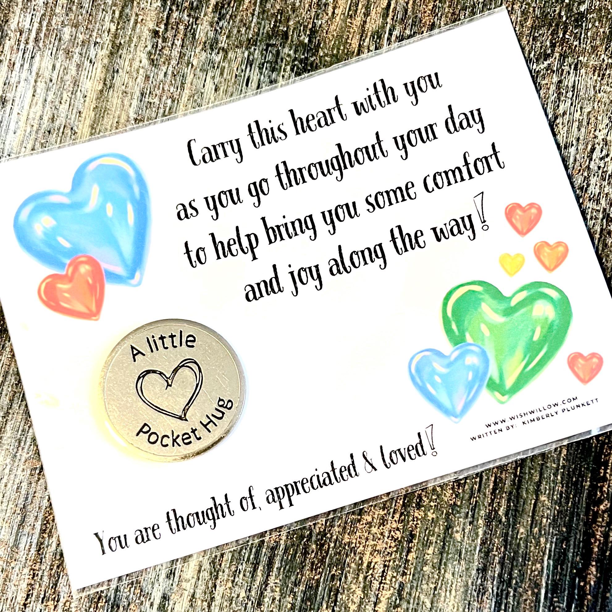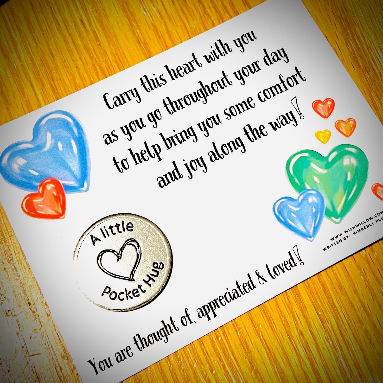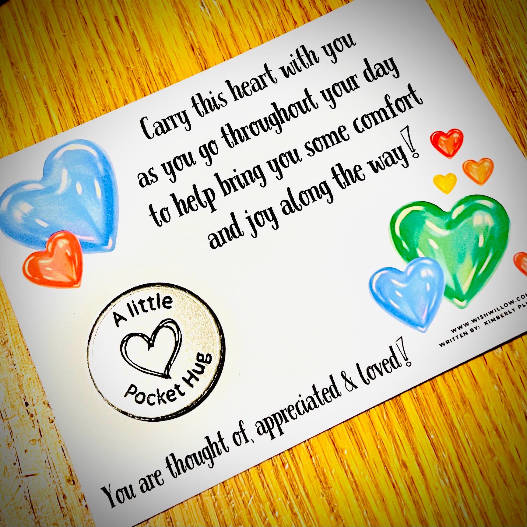 CLEARANCE - Pocket Hug Gift - Original Poem With Coin - Thank You, Encouragement, Support, Comfort, Cheer - Red, Blue, Green Hearts