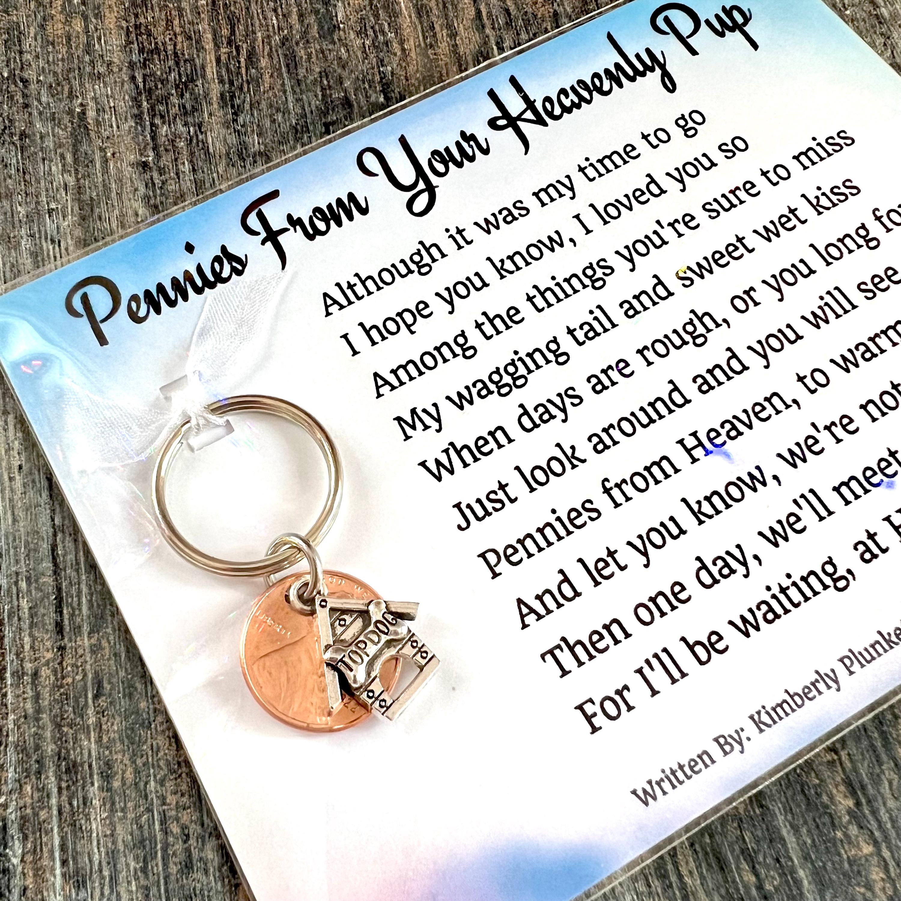 A dog house charm is featured, along with a penny, on this keychain. It is attached to a card, printed with our own original poem. The keychain is a great reminder that our beloved pets are always close at heart, and that we should look for signs of their love, as we go through our days ♡ It will arrive in a cello bag, and makes a perfect little gift.