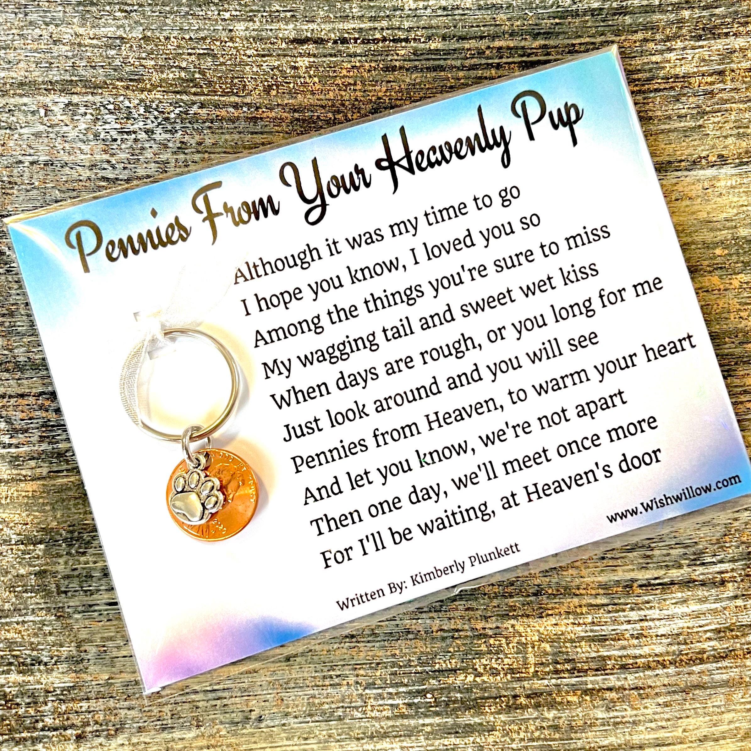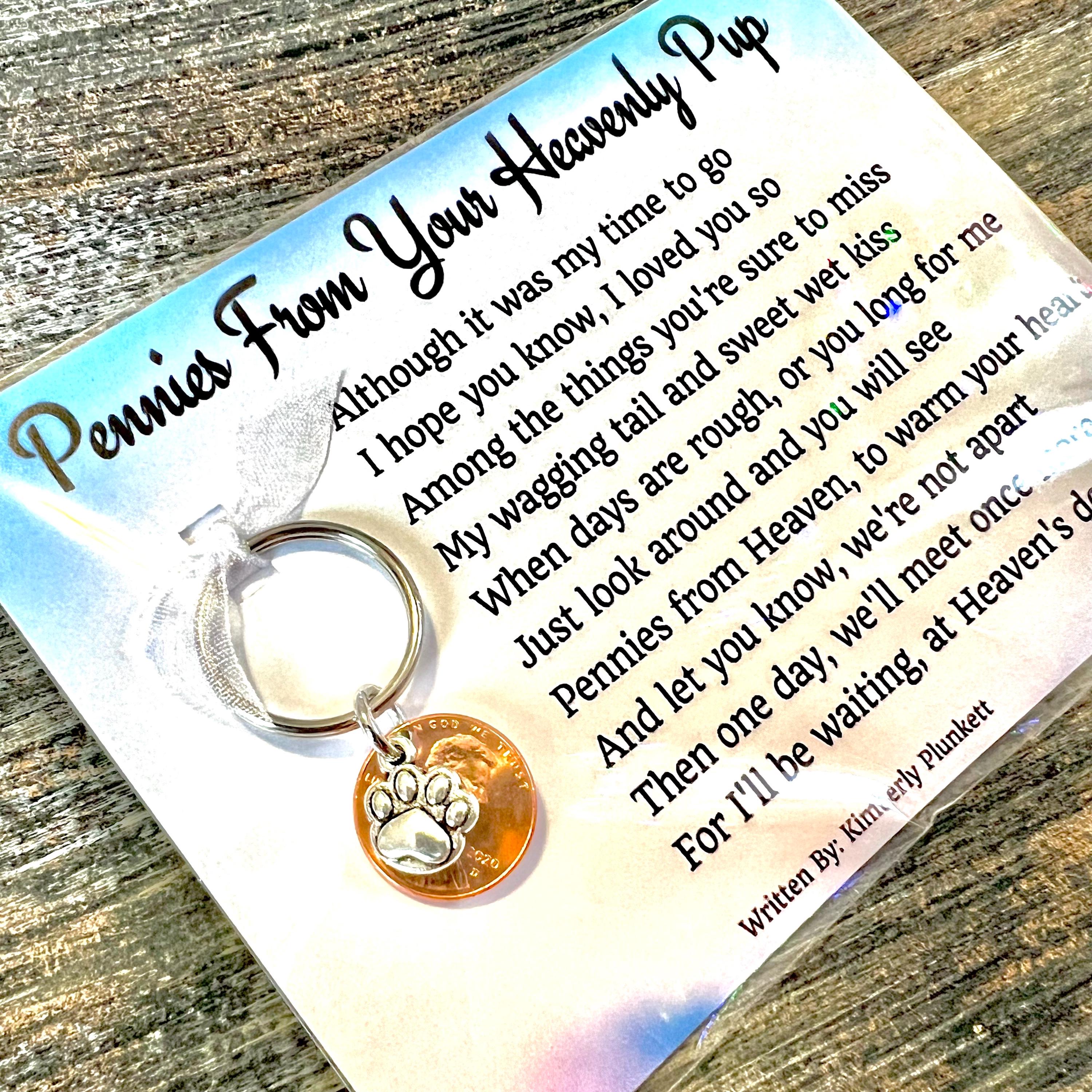CLEARANCE - Pennies From Your Heavenly Pup - Poem By Kimberly Plunkett - Keychain Gift - Dog, Death, Loss - Solid Dog Paw Print Charm
