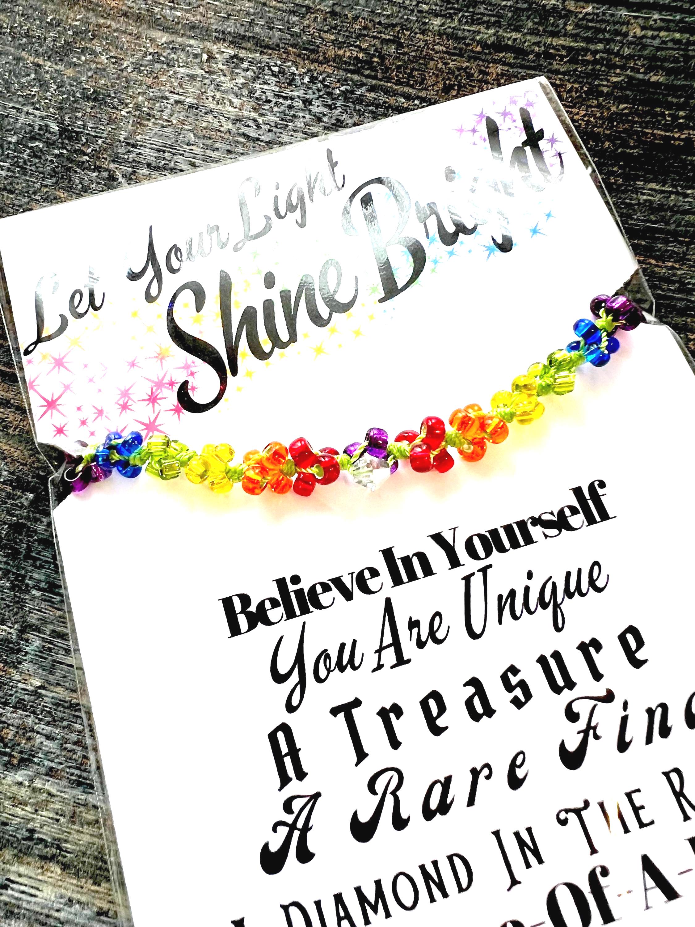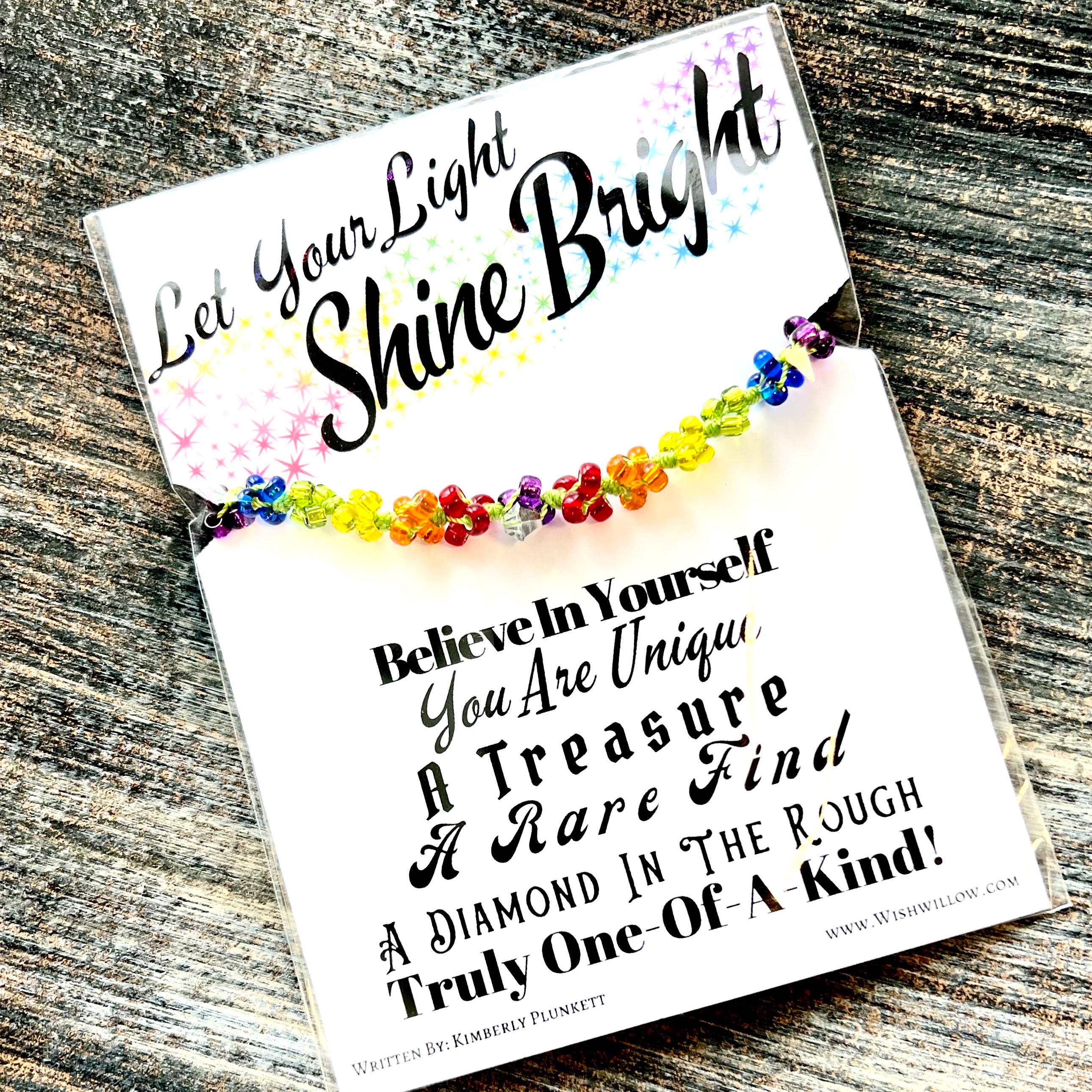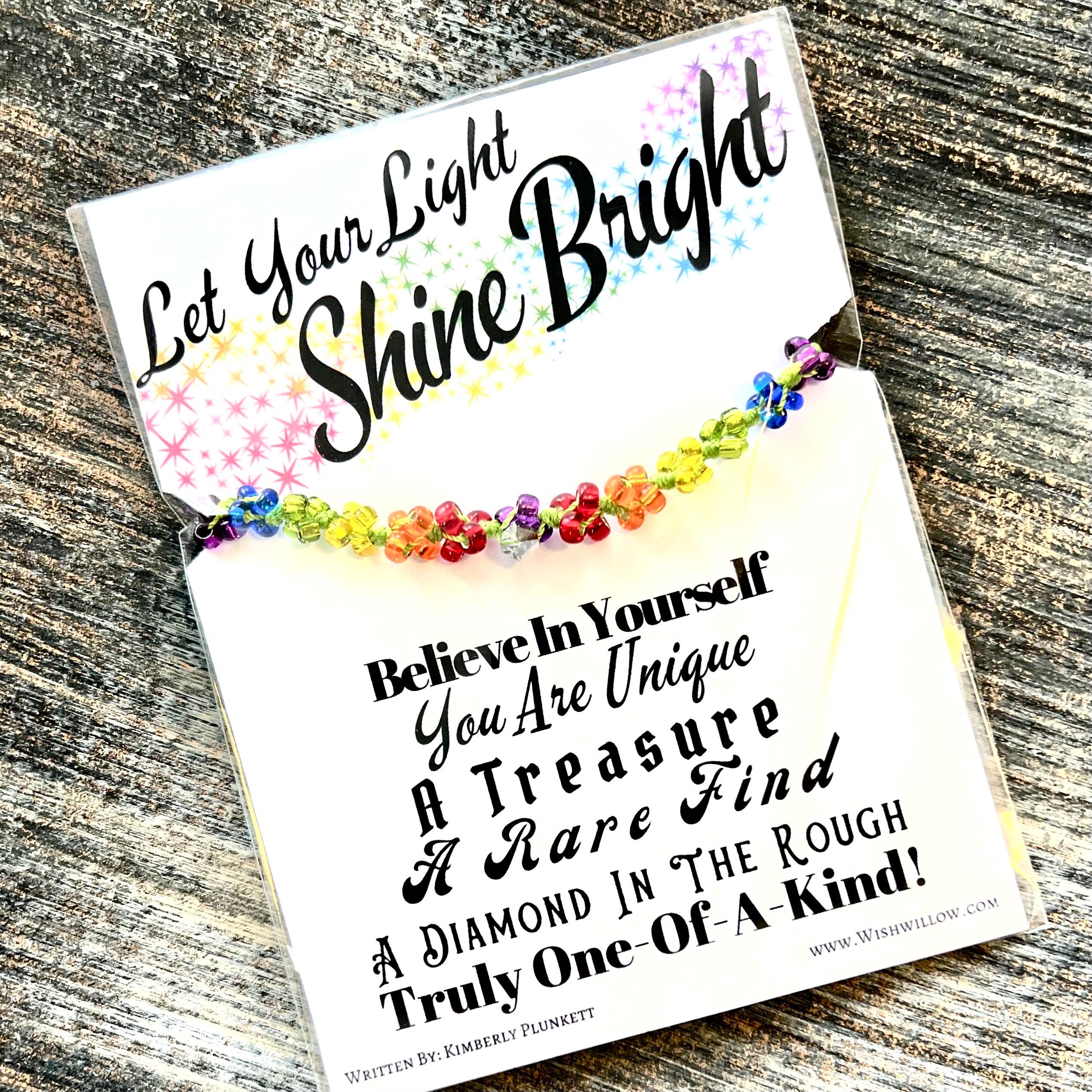 Let Your Light Shine Bright Bracelet - Inspirational Gift - Poem By Kimberly Plunkett - Hand Knotted With Glass Beads